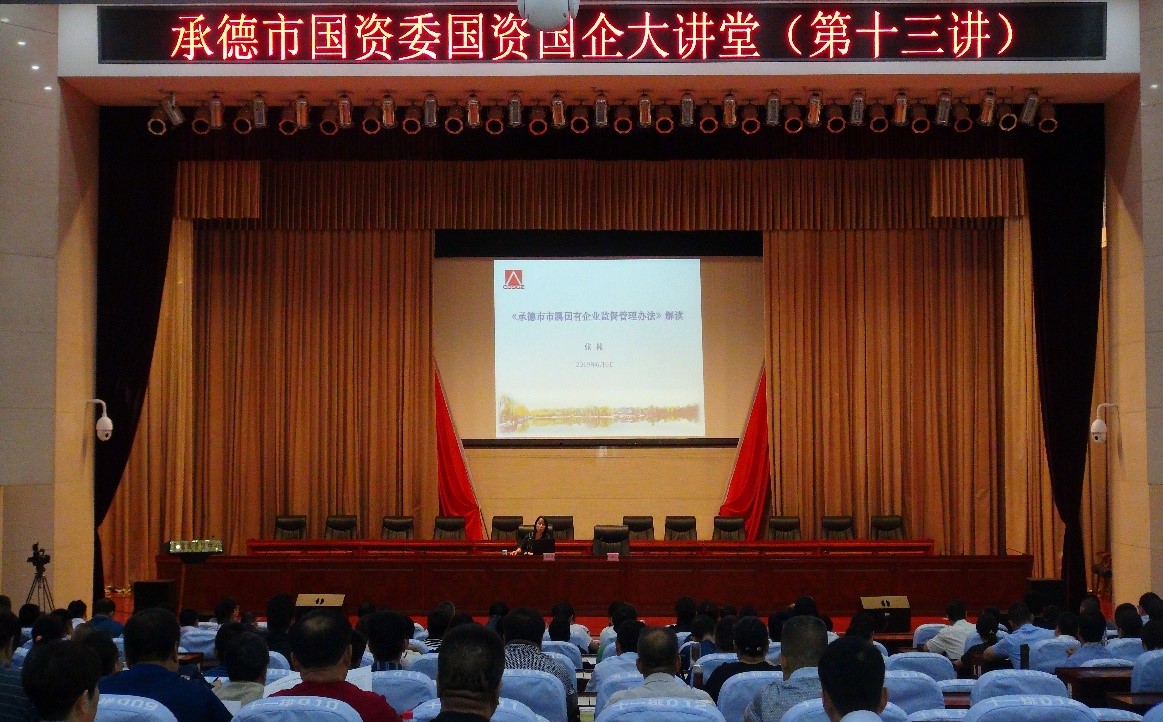 本次大講堂由市國資委黨委委員、副主任陳宏同志主持,市國資委監(jiān)事會主席張楠同志向參會人員介紹了我市印發(fā)的《承德市市屬國有企業(yè)監(jiān)督管理辦法》具體要求,并對該辦法進行了詳細解讀;我公司總會計師趙俊華同志就融資工作進行了講解,并向參會人員分享了國控集團在融資活動中的經(jīng)驗。