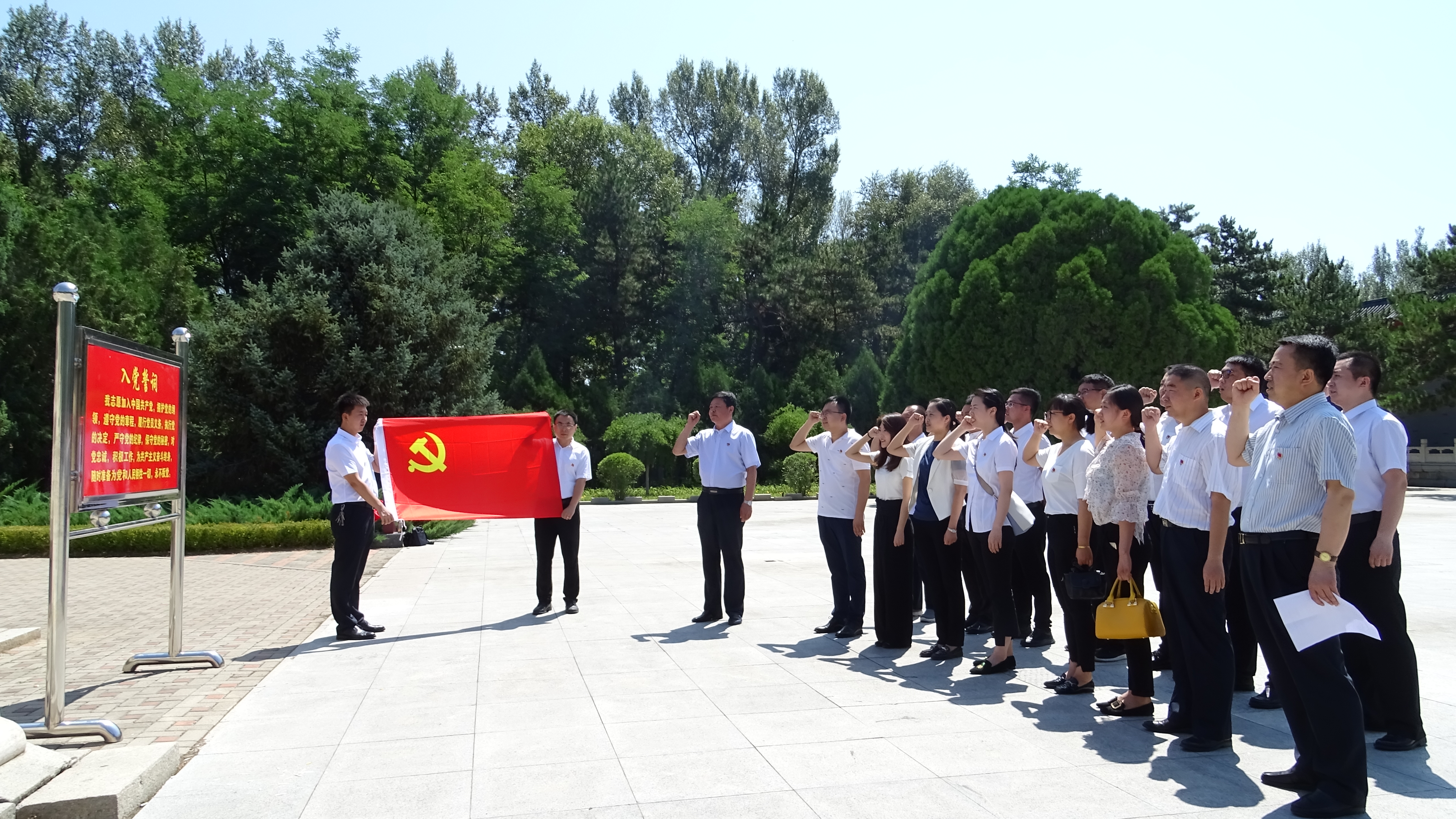 在新中國成立70周年、中國共產黨成立98周年之際,按照市委組織部關于做好“不忘初心、牢記使命”主題教育活動的預熱升溫工作安排,2019年7月12日,市國控集團組織全體黨員及入黨積極分子,在董存瑞烈士陵園開展了“不忘初心、牢記使命”主題教育活動之“緬懷革命先烈、弘揚愛國精神”主題黨日活動。