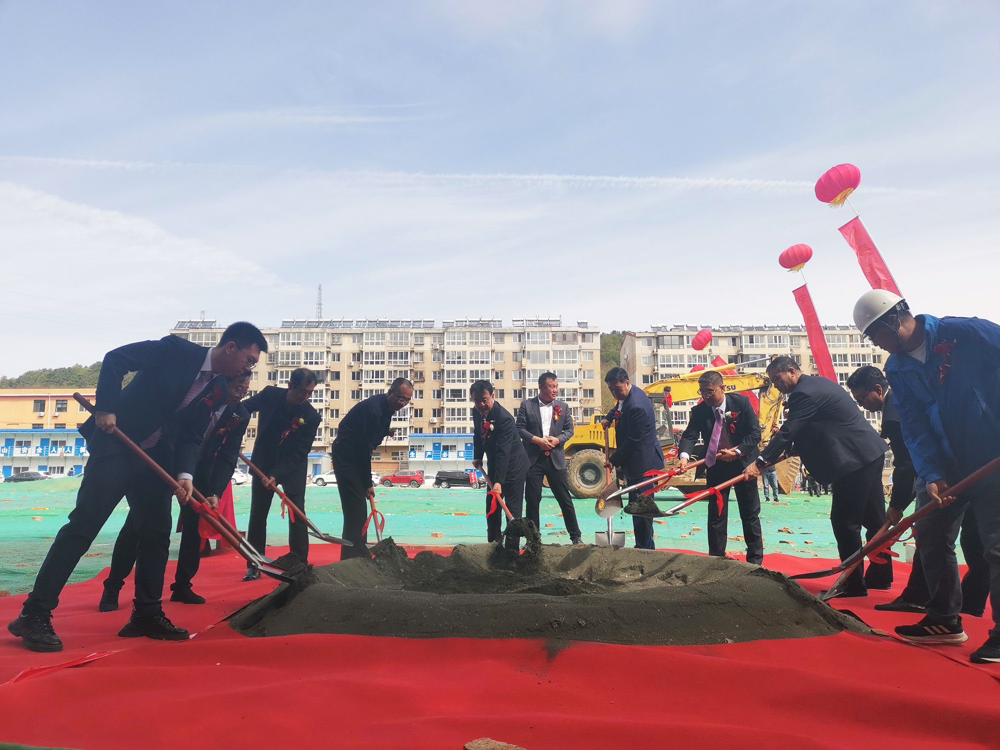 9:40分,承德國(guó)控集團(tuán)黨委書(shū)記、董事長(zhǎng)張建軍為祥獅點(diǎn)睛,伴著鼓聲開(kāi)始舞動(dòng),送上祥瑞和祝福,祝國(guó)越家園項(xiàng)目開(kāi)工大吉。隨后領(lǐng)導(dǎo)們共擎金鍬,揚(yáng)土培基,現(xiàn)場(chǎng)工程器械全面開(kāi)工作業(yè),儀式圓滿(mǎn)閉幕。